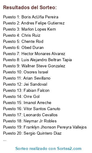Resultados del sorteo: