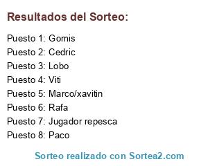 Lista de participantes: CEDRIC, MARCO/XAVITIN, VITI, GOMIS, LOBO, RAFA, PACO, JUGADOR REPESCA.
