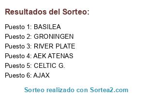Lista de participantes: AJAX, GRONINGEN, BASILEA, RIVER PLATE, AEK ATENAS, CELTIC G..