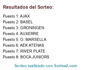 Lista de participantes: AJAX, GRONINGEN, O. MARSELLA, AUXERRE, AEK ATENAS, BASEL, RIVER PLATE, BOCA JUNIORS.