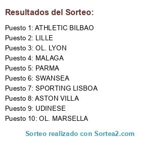 Lista de participantes: MALAGA, SWANSEA, LILLE, OL. LYON, OL. MARSELLA, PARMA, UDINESE, ATHLETIC BILBAO, ASTON VILLA, SPORTING LISBOA.