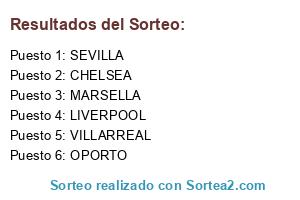 Lista de participantes: OPORTO, MARSELLA, SEVILLA, CHELSEA, VILLARREAL, LIVERPOOL.