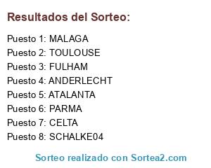 Lista de participantes: ATALANTA, PARMA, MALAGA, FULHAM, 2º CLASIFICADO, TOULOUSE, ANDERLECHT, 1º CLASIFICADO.
