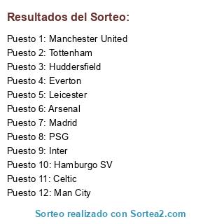 Lista de participantes: Hamburgo SV, Manchester United, PSG, Celtic, Arsenal, Inter, Leicester, Huddersfield, Tottenham, Everton, Madrid, Man City.