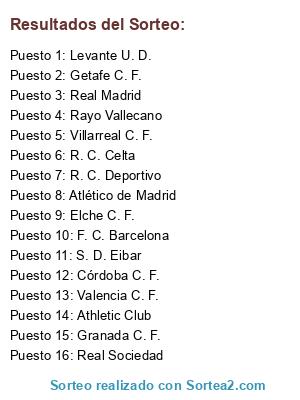 Resultados del sorteo: