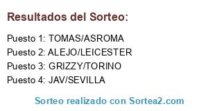 Lista de participantes: ALEJO/LEICESTER, JAV/SEVILLA, GRIZZY/TORINO, TOMAS/ASROMA.