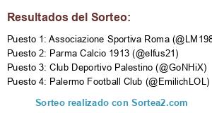 Lista de participantes: Palermo Football Club (@EmilichLOL), Associazione Sportiva Roma (@LM1989GR), Club Deportivo Palestino (@GoNHiX), Parma Calcio 1913 (@elfus21).