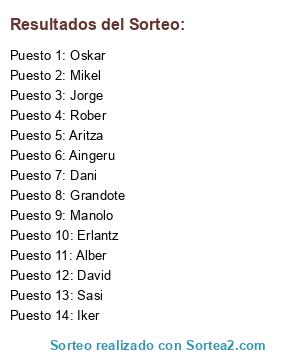 Resultados del sorteo: