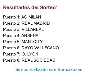 Lista de participantes: RAYO VALLECANO, VILLAREAL, MAN. CITY, REAL MADRID, REAL SOCIEDAD, O. LYON, AC MILAN, ARSENAL.