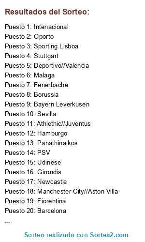 Lista de participantes: Athlethic//Juventus, Tenerife, Barcelona, Sunderland//Real madrid, Osasuna, PSV, Genoa, Bayern Munich, Stuttgart, Olympiakos, Malaga, Intenacional, Panathinaikos, Roma, Girondis, Espanyol//Atletico de Madrid, Udinese, Fiorentina, Deportivo//Valencia, Manchester City//Aston Villa, Fenerbache, Getafe, Sporting Lisboa, Hamburgo, Arsenal, Bayern Leverkusen, Milan, Oporto, Sevilla, Lyon, Borussia, Newcastle.