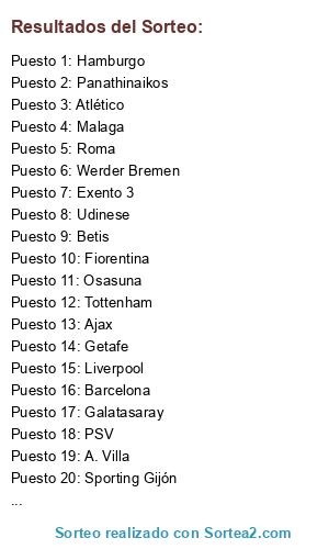 Lista de participantes: Boca Juniors, Manchester United, Sporting Lisboa, Tottenham, Espanyol, Las Palmas, Barcelona, Arsenal, Chelsea, Werder Bremen, Genoa, Betis, Olympique Marsella, Benfica, Olympiakos, Bayern Munich, Manchester City, Hamburgo, Deportivo, Lazio, Athletic Bilbao, Internacional, Everton, Zaragoza, Bayer Leverkusen, Real Madrid, Liverpool, Sampdoria, Stuttgart, A. Villa, Sevilla, Valencia, Panathinaikos, PSG, Juventus, Inter Milan, Milan, Roma, Galatasaray, Wolfsburgo, Napoli, Fenerbache, Atlético, Sporting Gijón, Osasuna, Olympique Lyon, PSV, Schalke 04, Malaga, Oporto, Borussia Dortmund, Sunderland, Getafe, Villarreal, Ajax, Tenerife.