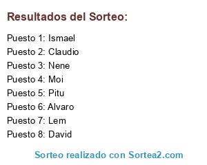 Lista de participantes: Lem, Nene, Alvaro, David, Moi, Claudio, Pitu, Ismael.