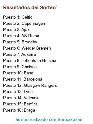 Lista de participantes: Tottenham Hotspur, Werder Bremen, Lyon, Benfica, Glasgow Rangers, Valencia, Copenhagen, Barcelona, AS Roma, Basel, Brondby, Chelsea, Ajax, Auxerre, Braga, Celtic.