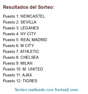 Lista de participantes: CHELSEA, REAL MADRID, MAN. CITY, LEGANES, VALENCIA, TORINO, GIRONA, SAMPDORIA, ESPAÑOL, BARCELONA, LUGO, CELTA.