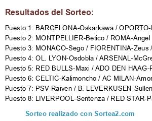 Lista de participantes: PSV-Raiven / B. LEVERKUSEN-Sullendonkey / ZENIT-Tongho / FLAMENGO-Ferminnn, RED BULLS-Maxi / ADO DEN HAAG-Pepelu / INDEPENDIENTE-Iborra / AJAX-Luizao, BARCELONA-Oskarkawa / OPORTO-Nachoeme / PSG-Cexar / S. ETTIENE-Eckae, CELTIC-Kalimoncho / AC MILAN-Amonosparexxx / OL. MARSELLA-Marcos / LAZIO-Magic King, LIVERPOOL-Sentenza / RED STAR-Pabloski / RACING CLUB-Tabascos / SANTOS-Duquevillar, OL. LYON-Osdobla / ARSENAL-McGregor / GUANZHOU-Lucamontana / PARMA-Antonio, MONACO-Sego / FIORENTINA-Zeus / ESTUDIANTES-Cuervo / GALATASARAY-Bustillo, MONTPELLIER-Betico / ROMA-Angel el Grande / BOCA JUNIORS-Miguelillo / INTER DE MILAN-Ru Cortes.