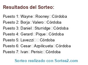 Lista de participantes: Vicente Guaita Córdoba, Cristian Alvarez Córdoba, Ivan Perisic Córdoba, Borja Valero Córdoba, Lucas Moura Da Silva Córdoba, Lavezzi Córdoba, Koke Córdoba, Bruno Soriano Córdoba, Esteban Granero Córdoba, Pablo Zabaleta Córdoba, Jordi Alba Córdoba, Cesar Azpilicueta Córdoba, Juan Mata Córdoba, Javier Mascherano Córdoba, Jan Vertonghen Córdoba, Alvaro Dominguez Córdoba, Kyriakos Papadopoulos Córdoba, Gerard Pique Córdoba, Victor Ruiz Córdoba, Adrian Córdoba, Wayne Rooney Córdoba, Daniel Sturridge Córdoba.