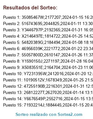 Este sorteo ha sido certificado por Sortea2. Sortea2 garantiza que: