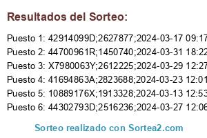 Lista de participantes: Sorteo realizado sobre un fichero que contiene 37.537 participantes.