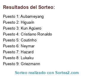 Lista de participantes: MESSI, BALE, KUN AGÜERO, ÖZIL.