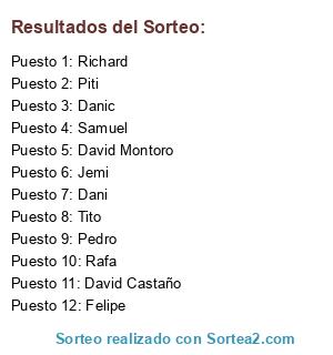 Lista de participantes: David Montoro, Tito, Dani, Pedro, Jemi, Felipe, Piti, Samuel, Richard, Danic, David Castaño, Rafa.