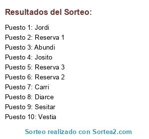 Lista de participantes: Sesitar, Abundi, Diarce, Carri, Jordi, Josito, Vestia, Reserva 1, Reserva 2, Reserva 3.