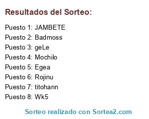 Lista de participantes: Badmoss, Rojinu, Wk5, titohann, Egea, geLe, Mochilo, JAMBETE.