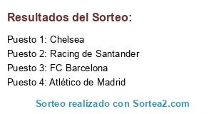 Lista de participantes: Racing de Santander, FC Barcelona, Chelsea, Atlético de Madrid.