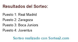 Lista de participantes: Zaragoza, Juventus, Real Madrid, Boca Juniors.