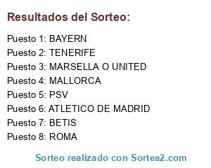 Lista de participantes: PSV, ATLETICO, TENERIFE, MARSELLA O UNITED, ROMA, MALLORCA, BAYERN, BETIS.