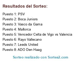 Lista de participantes: Boca Juniors, Rayo Vallecano, Vencedor Celta de Vigo vs Valencia, Leeds United, Mallorca, Vasco da Gama, ADO Den Haag, PSV.