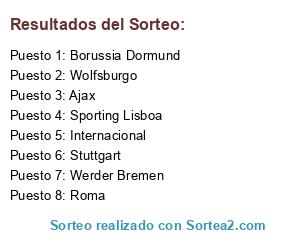 Lista de participantes: Ajax, Roma, Stuttgart, Internacional, Werder Bremen, Sporting Lisboa, Wolfsburgo, Borussia Dormund.