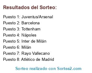 Lista de participantes: Tottenham, Inter de Milán, Nápoles, Barcelona, Rayo Vallecano, Milán, Atlético de Madrid, Juventus/Arsenal.