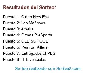 Lista de participantes: IT Invencibles, OLD SCHOOL, Grow uP eSports, Pestival Killers, Qlash New Era, Amelia, Los Mafiosos, Entregados al PES.