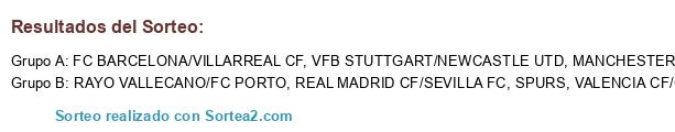 Lista de participantes: FC BARCELONA/VILLARREAL CF, SPURS, VALENCIA CF/GETAFE, REAL MADRID CF/SEVILLA FC, LIVERPOOL, RAYO VALLECANO/FC PORTO, VFB STUTTGART/NEWCASTLE UTD, MANCHESTER CITY.