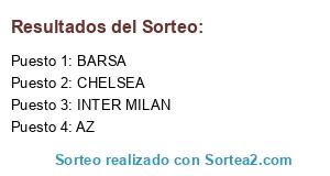 Lista de participantes: BARSA, CHELSEA, AZ, INTER MILAN.