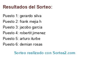 Lista de participantes: frank mejia h, gerardo silva, arturo iturbe, robertito jimenez, jacobo garcia, demian rosas.