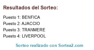 Lista de participantes: AJACCIO, LIVERPOOL, TRANMERE, BENFICA.