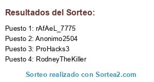 Lista de participantes: Steven_aleman, hello_mario, lacasadehierro, EvanHackingGTA, joselitoh3, Monster_proXD, BeBuTosKi2, Id sorteó Yensai, Marcos3estrellas, AlexiCumia, ProHacks3, Id Sorteo PacodeVlcc, DamiduOMG, Raulcom , mamu151, Id sorteo Hipo_11, yarami, xxismixx, JoanPro5, xXElDiTOXx, AleCastedo1, carli-tooos , carlosj97, fedry23_gtav, TCT JOAQALEX 19, FarloperoHM, ivan_2999, josep_sergi, Eder García, David_Lupi_12, mohamito2001, jean-gtav, Id sorteo: xNaaZhox, FRAN10Ronaldinho, TheTibuSniperESP, Djblocke, mickeymodz_4, josuxx99, eXTinZeeR, theiviproxd, superken121, Tr-Gamer222, Roger12340, NicoPxD, shadowleone3736, ID: MARC_CRACK99, YT-GHOST_10, Pedro95zzz , ferodriguez13, Anonimo2504, MAcho_Puro, Lost_Angel_11, Ps3: VirtuaLz_ReLapZe YouTube: CriiTiKaL BesT, angarmartin, patxe14, Id: jose777_999, Alberpucela_99, bruno_morabito1, Protic77, samuxblack, JuanluRCP, Narcis14L, leandroargen, XxPyroSwaggiexX, pabloramoszea, X-killercod-X, willi_9602, colocolo2018, thelemox74, rugedevlc, autobusmalaga, AlvaroESP99, URIELJIMENEZ1234, wasimishu, Agu150, id sorteo fidel_fcb, EnderGamer100, Id sorteo Nickocana, LuckHammer14, soyleo321, BxDarckxZ, miguelvictor2124, SixthCardinal, XxHACK-ESPxX, PEPOGREMARO, xavictor9901, varela_15, skywalkermanel, ID: byRoGeRR, megalires, fardatxet, josedecarabeo, sinlufi19, ID:Oltie4002, LINARES_2000, kevincitopxdx, malacroft, camilolobo6, Dapebien17, djkevintherun, matigamer150, Bender_2605, sastre222, WALJULI2013, kenneth0201, Hit-Mou5, alexia25michelin, huesos_max, eugenioXMAXIMUS, Ulysses2133, id sorteo dudmeister3, Xxalex098xX, dilan_28, edu290199, colombiano28, Eduardolalo999, snipycarbon, I-V-A-N-_-911, adrianwert3, rAfAeL_7775, ByronArieel9, lukita99, RodneyTheKiller , Strakeoriginal, Daniblaster, id sorteo gta5 javierplus, HeKtOrToLoKoXaXo, shifter097, iHearT_LoVeD, Ramoncitooo10, s, QUILMES-CAPO, cristianbenet, MaxiiCOD.