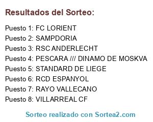 Lista de participantes: SAMPDORIA, DINAMO DE MOSKVA, STANDARD DE LIEGE, RAYO VALLECANO.