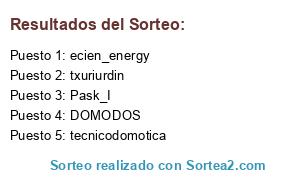 Lista de participantes: ecien_energy, DOMODOS, tecnicodomotica, txuriurdin, pinofanclub, Gelindor, Pask_I.