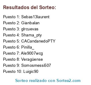 Lista de participantes: Luigic90, Veragüense, Gianbalan, glrcuevas, Ale9007wcg, Sebas13laurent, Pinilla_, CACandanedoPTY, Shama_pty, Somosmessi507.