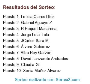 Lista de participantes: Abel Camacho, Adrian Galvez, Adriana Recio, Agustina Guerrero Manzorro, Ainhoa Ruiz Ramirez, Alba de la Cruz, Alba Natera Barba, Alba Rey Garzón, Albiita Crespo, Alejandro Bbdd, Alejandro Lara Delgado, Alex Gago Ayllon, Alex Mala Malísima, Alfonso Manuel Fajardo, Almudena Fmb, Almudena Robles Martinez, Almuymoi Cia Otero, Álvaro Fuertes Jaime, Álvaro Gutiérrez, Ana CM, Ana Cristina Peinado, Ana Espejo, Ana Maria Ariza Herrera, Ana Maria Roales Méndez, Ana Martin, Ana Reyes, Ana Vazquez Sanchez, Anabel Cortés, Anabel Peinado Galán, Anastasia Milu, Andrea Comino, Andrea García Bueno, Andrea PL, Andrea Zarzuela, Andres Jesus Ganaza Baena, Andres Jesus Oviedo Morejon, Angeles Garcia Cabrera, Angeles Maria, Angi Roldan, Anna Belen MRuiz, Anna Giullia, Antonio Adán Puerto, Antonio Jimenez Cantalejo, Antonio Jimenez Solis, Antonio López Corral, Arantxa Fuente Concejero, Ascension Lora, Beatriz Beato, Beatriz Bpr, Beatriz Salas Delgado, Begoña Collantes Fernández, Begoña Corbacho, Begoña Ojeda, Bella Dominguez Mora, Bivi Barcia, Blanca Orgambides, Brenda Mora Moron, Brenda Murillo Lavi, Cari Perez Cardenas, Carlos Albert, Carlos Hinojosa Valle, Carlos Jiménez, Carlos Murillo Silva, Carlos Tizon, Carmen Carave, Carmen Casanova, Carmen Conejo, Carmen Diaz Doello, Carmen Giron Llorca, Carmen Jackson, Carmen Karmela, Carmen Lora, Carmen Salmeron Bouvier Bernois, Carmen Segarra García, Carmen Terrada Ruiz, Carmen Velez Garcia, Carmen Villegas, Carolina Rosso, Carolina Soto, Ceci Bedoya, Cecilia Estrella, Chari Zampaña Lopez, Cindy May, Clara Garcia Santisteban, Claudia Gil, Clemente Otero Lopez, Conchi Perez Lores, Coral Cádiz, CPall Flo, Cristi LC, Cristina Ajenjo, Cristina Feria, Cristina Herrador Ciria, Cristina Llinares Sanchez, Cristina López, Cristina Lozano Torres, Cristina Suarez, Cristina Vela, Cristóbal Mora Espina, Daisa Maria Salguero, Daniel Loureiro Tizon, Daniel Ramirez, Daniela Del River, David Benito, David Lanzarote Andrades, David Lara Blas, David Merino Cárave, Del Cai Cai Cai, Dessi Mt, Dolores Ayala Marquez, Dolores Fernandez Nuñez, Dolores Pérez Gonzalez, Elena Barea, Elena Cazorla, Elena Mar, Elena Ortiz Roselló, Eli Carlet, Eli Doello, Elvira Hernández Caso, Encarni Cordoba, Encarni Garcia Valle, Encarni Torres Berciano, Erika Guerra Martin, Esperanza Fernández, Estefania Doello Moreno, Estefii Gallardo, Esther AC, Estrella Bernal, Estrella Gámiz Navarro, Estrella Valencia Davila, Eugenia Cabrera Pardo, Eva Carrasco Clavijo, Eva Maria Marin Raposo, Faly Pérez, Fani Garzon Coello, Fanny Raposo Caballero, Fatima Moreno, Faty Martin Bejarano, Fco Javier Camacho, Flamencura Pura FP, Fran Leandra, Fran Leandra turron, nutellino y tocino, Francis Gomez, Francisco Javier Gutiérrez Vélez, Gabriel Aguayo Z, Gabriela Buenaño, Geli Palma Leiva, Gema Rodríguez Flores, Guadalupe Lupe RS, Guillermo Bueno, Ignacio Padilla Bueno, Ines Artolamagrañal, Ines Bernal, Ines Garrucho, Ines Maria, Ines Rodriguez Ortiz, Inma Alcantara, Inma Camacho, Inma Db, Inma Gonzalez Perez, Inma Troncoso, Irene Gallego Sanchez, Irene Jimenez, Irene Quintero Cortes, Isa Dominguez Lopez, Isa Ferrer, Isaac Naveiro Mateo, Isabel Consuegra Prats, Isabel Galeano Fernandez, Isabel Maria Callealta Sara, Isabel Maria Morales Pomares, Isabel Mena Morales, Isabel Muñoz Gallardo, Isabel Yomisma, Isidro Gravan, Isolina Lázaro, Ivan Moreno, Jaime Guti Lobo, Javi Montero, Javi Romo, Javier Bello González, Javier Cordero Guzmán, Javier Gonzalez Perez, Javier Molina Rojas, Javier Salmerón, Javierco Gomez, JCarlos Sara M, Jean Luc Dewerse, Jenny Jesus Jesulito, Jenny Perez Muñoz, Jeny Pino, Jesica Navarro, Jessica Alben, Jéssica Clavijo Lores, Jessy Ainhoa, Jesus Aledo Vera, Jesús FC, Jmaria Acuparra, Joaquin Amador, Joaquín Fernández, Jonathan Jiménez Valle, Jorge Lolai Lola, Jose Antonio Gomez Benitez, Jose Antonio Vilanova Bravo, Jose Diaz Rodriguez, José Gilabert Rodríguez, Jose Luis OlaVe GuTierrezz, Jose Miguel Fernandez Ariza, Juan Antonio Moreno Bernal, Juan Gutipe, Juan José Cabrera Güelfo, Juan Ros, Juani Garcia Pinto, Juanma Valle, Judith Perez Leon, Jys Gonzalez Farsi, Karmen Lopez, Kiki Soto, La Ne Ni, Laura Amado Perez, Laura Hidalgo Jaen, Laura Laurita, Laura Muñoz Rodríguez, Lena Benito, Leon YMarichu, Leonardo Moreno Lanzarote, Leticia Claros Díez, Lidia Da, Lidia Dominguez, Lo HM, Lola Mulero Gonzalez, Loli Alvaro, Loli Rub, Loli Subiño Perez, Loli Vichi Hidalgo, Lorena Mena, Lourdes Aguilar, Lourdes Moreno, Lucas De Jesus, Lucía Andrades Robles, Lucia Pozo Morales, Luna Meschiari, Luz Maria Flores Ramos, M Angeles Bernal, M Eugenia Monge, Macarena Garrido, Macarena Leiva, Macarena Moreton, Macarena Paloma, Maia Gonzalez Trinidad, Maika Anelo Sanchez, Mamen Mata Lopez, Manuel Acosta Costela, Manuel Andaluz, Manuel Rv, Manuela Delgado, Mari Angeles Molero Plasencia, Mari Carmen Garcia Cuevas, Mari Luz Márquez, Mari Rodriguez, Mari VeneBece, Maria Arana Pinteño, María Cordero Pérez, Maria Cuevas De Los Reyes, María Del Carmen Rodríguez Gómez, Maria Del Mar Becerra, María Del Pilar Gandulla López, Maria Isabel Barcia Parra, Maria J Conejero Montero, Maria Jesus Ares Soto, Maria Jesus Molero Marente, Maria Jose Bazo Consuegra, Maria Jose Enriquez Perez, María José Magriñán, Maria Jose Patino Morales, Maria Jose Vega Cuella, Maria Luisa Iñiguez, Maria Macias Jimenez, Maria Oca Delgado, María Pérez, Maria Qu, Maria Schot, Maria Segura, María Valiente González, Marian Valle Benitez, Maribel López, Maricarmen Jaime, Mariló Guerrero, MariloyMigue Caballero Alvarez, Marimar Rey Graña, Marimar Rodriguez, Marina Alcántara, Marina Valencia Shushu, Marisa Caballero, Marta Alonso, Marta Menéndez, Marta Morales Rodriguez, Marta Ramos Camacho, Marta Rodríguez Marroquín, Mati Es Guay, May Pacheco Naveiro, Mayte Moreno, Melani Duran, Merche Lores, Merchi Flor, Mery Laura, Migue Gallardo Molina, Miguel Angel Hernandez Alonso, Migu