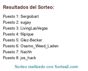 Lista de participantes: LivingLasVegas, Sergiobart, Nachh, Osamo_Weed_Laden, filipique, Glez-Becker, jos_hack, sugay.
