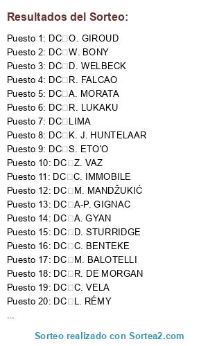 Lista de participantes: DC A. DI NATALE, DC K. J. HUNTELAAR, DC R. FALCAO, DC M. MANDŽUKIĆ, DC M. BALOTELLI, DC E. DŽEKO, DC D. WELBECK, DC O. GIROUD, DC C. BENTEKE, DC JACKSON M., DC A. ADURIZ, DC D. STURRIDGE, DC W. BONY, DC R. LUKAKU, DC A. LACAZETTE, DC C. BACCA, DC A. MORATA, DC WONSEOK PIL, DC S. ETO'O, DC G. PELLÈ, DC F. LLORENTE, DC L. RÉMY, DC C. IMMOBILE, DC BARRIOS, DC LIMA, DC A. GYAN, DC C. VELA, DC A-P. GIGNAC, DC Z. VAZ, DC R. DE MORGAN.