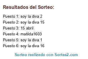 Lista de participantes: 15 abril, matilda1603, soy la diva 16, soy la diva 15, soy la diva 1, soy la diva 2.