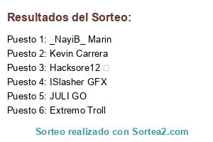 Lista de participantes: Hacksore12 ツ, Kevin Carrera, JULI GO, Extremo Troll, _NayiB_ Marin, ISlasher GFX.
