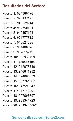 Resultados del sorteo: