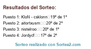 Lista de participantes: Jordycf 17º de 2º, KloN - csklonn 19º de 1º, nistelroo 20º de 1º, aitortxusm 20º de 2º.