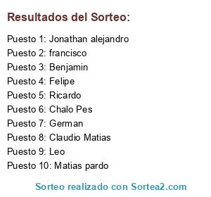 Lista de participantes: Chalo Pes, Jonathan alejandro, Matias pardo, German, francisco, Claudio Matias, Ricardo, Benjamin, Leo, Felipe.