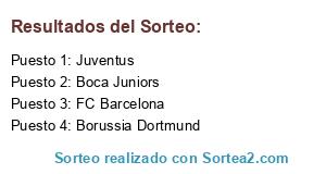 Lista de participantes: Juventus, Boca Juniors, Borussia Dortmund, FC Barcelona.